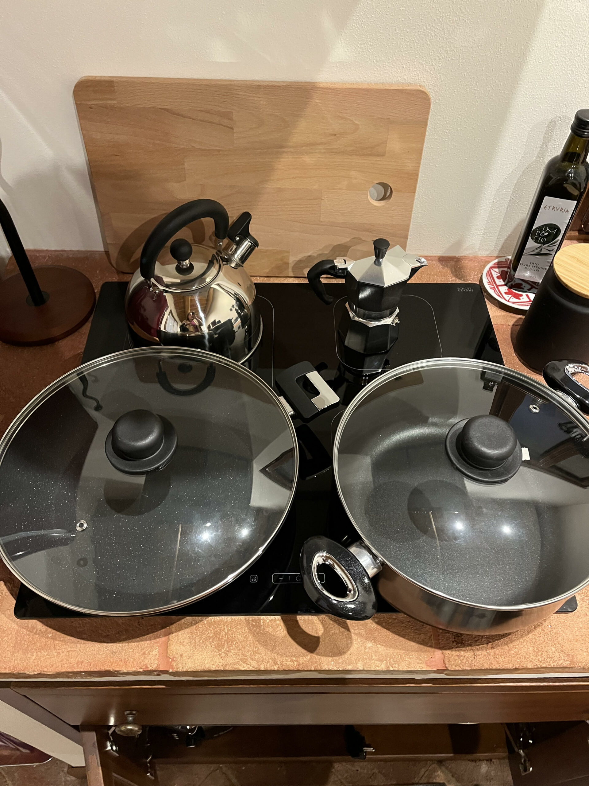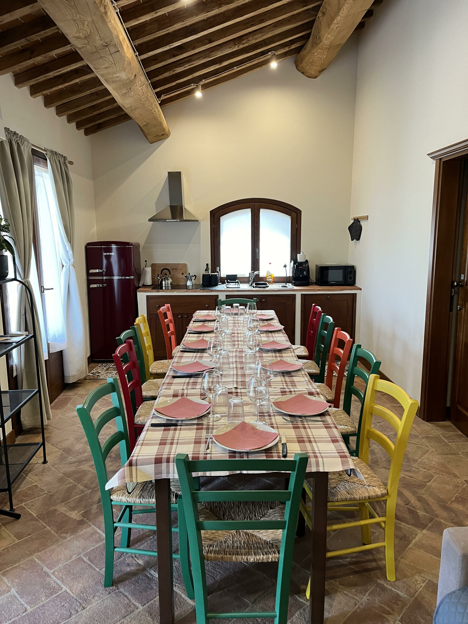 All’interno, lo spazio di 23 mq è composto da una cucina toscana in muratura ben fornita che si apre su un soggiorno con divano letto matrimoniale. La cucina è dotata di tutte le comodità sia per cucinare (es. pentole, padelle, utensili, tostapane, microonde, ecc.) che per consumare pietanze (es. servizio completo di stoviglie).